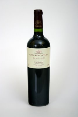 Hace pocos días, al organizar la cata “entre amigos” en mi pueblo, hablé con Félix para pedirle unas botellas de uno de sus vinos Vera de Estenas, de la Denominación de Origen Utiel-Requena. Félix reacciono muy rápido, al día siguiente llegó a mi casa una caja de su vino Casa Don Ángel Bobal 2002. La verdad es que este vino destacó cosa que me comentaron varios profesionales que asistieron. Este vino tinto tradicional elaborado a partir de la variedad autóctona Bobal ha pasado 6 meses en depósito, 15 en barrica y 12 en botella. Presenta un color picota profundo con ribete violáceo. En nariz es potente y posee una fina fruta bien madura, junto a unas notas de crianza de madera de calidad con finos ahumados, brea y café. En boca se muestra poderosamente estructurado con sensaciones frutales muy maduras y con ciertas notas dulces. Persistente final con recuerdos de los aromas primarios y ahumados. Un vino que deja una gran sensación de equilibrio. Un vino que me atrevo a recomendar sin ningún temor a equivocarme.