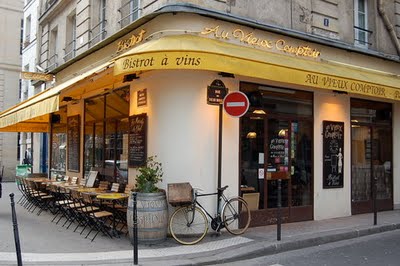 Tengo una cita para comer en Paris invitado por un buen amigo que aparte de ser francés y vivir en Paris se ha dedicado toda la vida al mundo del vino por lo que me queda claro desde el primer momento que comeremos y beberemos bien. Nuestra cita es en la puerta del Téâtre du Châtelet, mientras le aguardo recuerdo que hace pocas semanas actuó allí el buen amigo Paco Ibáñez. Cuando llega mi amigo nos dirigimos andando al restaurante sito en el número 17 de la rue des Lavandières-Sainte-Opportune, en el barrio de Saint-Germain l’Auxerrois. La fachada del Au-Vieux-Comptoir, que es como se llama el establecimiento presagia un lugar acogedor, cosa que constatas una vez dentro aparte de observar un ambiente de “gente maja”. Cyril y Anne son los propietarios del restaurante, ella nos recibe desbordante de una mezcla de amabilidad y simpatía. Las propuestas tanto de sólido como de líquido son amplias y sugerentes, me dejo llevar por las recomendaciones y finalmente nos sirven un delicioso paté de hierbas como entrante, que acompañamos con un La Chapelle des Augustins, Sancerre 2004, de Henri Bourgeois y como plato único un exquisito “boudin” al que acompaña un Les Mejeans, Cornas 2007 de Jean-Luc Colombo. Salimos del Au-Vieux-Comptoir satisfechos por la comida, por los vinos y por el trato. Repetiré con seguridad. Y si algún amigo viaja a Paris y me pide consejo acerca de un buen lugar para pasar un buen rato disfrutando de buena cocina y buenos vinos, le recomendaré que visite Au-Vieux-Comptoir.