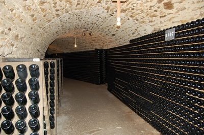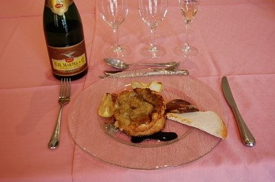 Ese día nos desplazamos desde la Côte des Blancs a Reims, atravesando la Montagne de Reims. A últimas horas de la mañana visitamos G.H. Martel & Cº, donde nos atendió fantásticamente Vincent Rapeneau, su director general, quien nos mostró el impresionante museo bajo las grutas galo-romanas en el que se refleja la historia de esta Maison fundada en 1869 y la propia historia de la evolución de la vitivinicultura en la Champagne. Actualmente G.H. Martel & Cº es el octavo grupo productor de Champagne con 10 millones de botellas. Tuvimos la oportunidad de degustar varios de sus elaborados, empezando con un Blanc de Blancs y un Blanc de Noirs Charles Orban, de Troissy, en el Valle de la Marne. El Blanc de Blancs presenta un color pajizo brillante, con un aroma sutil y fresco, frutal y buena acidez en boca. El Blanc de Noirs tiene un color dorado, con aroma potente, de fruta madura y finas notas especiadas, mientras que en boca es sabroso y con el carbónico bien integrado. Seguidamente catamos un P. Louis Martin Brut, de Bouzy (Montagne de Reims), que posee un color pálido con matices dorados, con buena expresión aromática en la que se aprecian cítricos de calidad, sabroso, con fondos de fruta madura y equilibrado en boca. Después nos ofrecieron un Château de Bligny. Este Château está situado en el corazón de la Côte des Bar (Aube) fue edificado por el Marques de Dampierre y forma parte del patrimonio histórico, arquitectónico y vinícola. El producto seleccionado fue un Brut que presentaba un color amarillo brillante, con aroma intenso, manzana madura y notas de lías, sabroso en boca y con matices de fruta. Siguió un G.H. Martel & Cº Brut Premier Cru, uno de los champagnes más emblemáticos de la firma. Color pajizo con finas burbujas que ascienden verticalmente. Aroma fresco, sutil y floral. En boca se desenvuelve fresco, ligero, seco y con agradable expresión de lías finas. Seguidamente la Cuvée Victoire Brut Premier Cru, también de G.H. Martel & Cº, que tiene un color dorado brillante, burbuja fina y persistente, aroma intenso con predominio de las notas de lías y matices de fruta madura, resultando maduro, sabroso, con agradables finas notas amargosas. Finalmente se descorchó una botella de Charles de Cazanove (Reims). Su Grand Apparat Brut tiene un color amarillo dorado, matices florales con finas notas ahumadas, seco, cremoso, elegante y largo. No estaba previsto pero al final de la degustación Vincent Rapeneau nos invitó a comer con el equipo comercial que se encontraba ese día de convención. De los platos que nos sirvieron nos impresionó el foie gras gratinado en corteza sobre la una cama de manzanas doradas a la sartén.