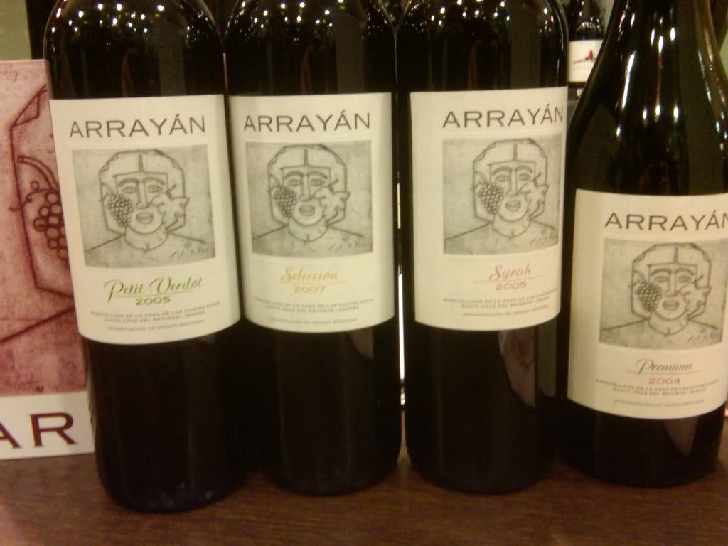 ARRAYAN PREMIUM 2004: Compuesto por Merlot, Syrah, Cabernet S. y Petit Verdot. 14%º vol. Se maceró durante dos días en frió después fermento durante 20 días pasando 15 meses de barrica francesa y otros 18 meses en botella.