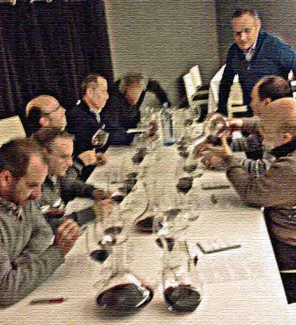 Si me he detenido en la descripción geográfica ha sido porque Asensi nos ha traído cuatro vinos cálidos de cuatro países y tres continentes: Europa, América y Oceanía. Empecemos por el primero, un viejo conocido australiano: Penfolds Bin 28 Kalimna Shiraz 2009.El ganador de la noche es un vino cálido y robusto, con una nariz atractiva (tostados finos y tofe, fruta roja, aceituna negra con recuerdos de pimiento y un fondo mineral) un ataque cálido y un paso amplio, con taninos vivos y buena persistencia. Uno de esos vinos cuyo descubrimiento nos impresionó en los tiempos en los que Asensi vivía en Australia. El segundo, Marimar State “La Masía” Pinot Noir 2008, es un Pinot Noir al estilo de California, con una nariz sugerente (fruta roja, café, especias y tostados finos) de ataque cálido y paso muy amplio y sedoso. Seguimos con otro conocido siciliano: Planeta Shyrah 2007. Con una nariz golosa de fruta roja en compota, ciruela, pimienta, caramelo y un fondo floral muy fino, en boca es cálido, amplio y goloso, con taninos dulces y un paso muy pulido. Por último, el representante español fue Casa Castillo Pie Franco 2008. Sinceramente a mí me gustó mucho, precisamente porque, de los cuatro, es el que tenía un carácter más “continental”, a pesar de tratarse de un varietal de clima cálido como es la Monastrell. Con una nariz muy fina, con fruta roja y ciruela, un punto balsámico, tostados finísimos (caja de puros y vainillas), en boca es donde, comparativamente, salía perdiendo. De ataque vivo y paso amplio, muy vivo, con unos taninos notables que se van a redondear en botella y buena persistencia. El más recio de los cuatro con diferencia, sin concesiones, con una estructura y unos taninos muy serios y mucho menos golosos que los demás. Creo que por esta razón fue, hasta cierto punto, penalizado. Con todo, las diferencias fueron pequeñas y la cata resultó sumamente interesante.