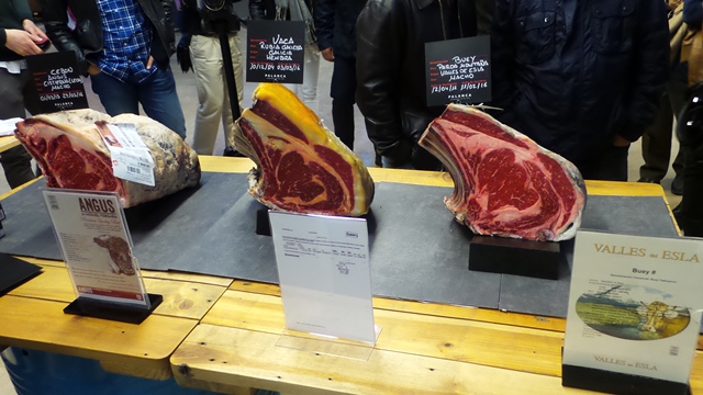 Empecemos por la carne. Palanca Carnissers es un establecimiento centenario ubicado en nuestro precioso Mercado Central. Pero esta larga experiencia, en este caso, no está en absoluto reñida con la innovación. No hace mucho que acometieron una ampliación y renovación de la parada para incluir una espectacular cámara de maduración a la vista del público. Natalia Estellés, propietaria, hizo una breve presentación del acto y José Guillot, veterano profesional a pesar de su juventud, realizó una introducción a los factores que determinan la calidad de la carne. Quizá esta introducción fuera más breve de lo que yo hubiera deseado, pero las condiciones acústicas y el tamaño de la mesa no ayudaban mucho a la fluidez del acto, la verdad.