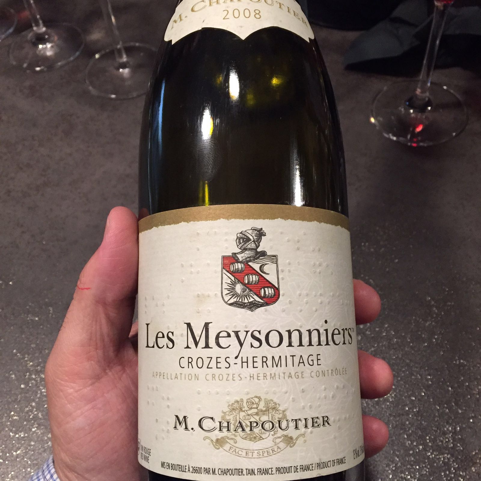 100% Syrah. Crozes-Hermitage AOC Vol. 13%, M. Chapoutier.