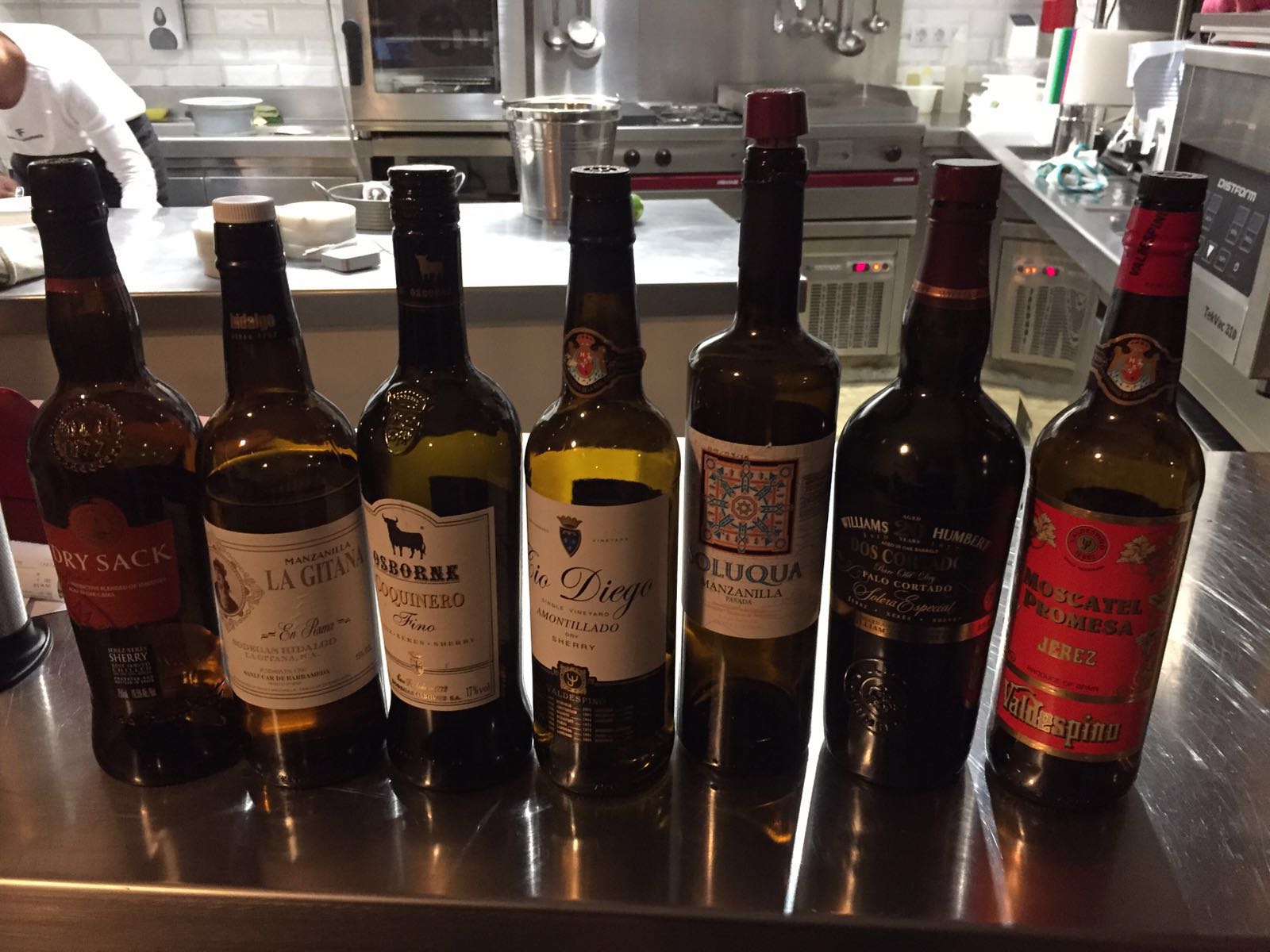 Antes de comentar el menú, conviene mencionar que en esta semana se celebraba el “Sherry Festival”, semana dedicada a los vinos de Jerez, con acontecimientos tan interesantes como la muestra de bodegas en el Balneario de Las Arenas, las catas comentadas o la proyección en pantalla grande del delicioso documental “El Misterio del Palo Cortado”, además de los maridajes gastronómicos con vinos de Jerez. Éste era el caso, porque el Embajador del vino de Jerez, Pepe Ferrer, nos había escogido una magnífica colección de joyas enológicas para acompañar la cena.