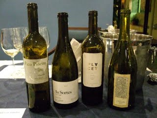 Entrando ya en materia sobre la cata, mi propuesta englobó 2 vinos de Galicia, de sendas bodegas de mucho prestigio, ampliamente premiadas y reconocidas: Bodegas Rafael Palacios, en la D.O. Valdeorras, en A Rúa (Orense); y Adegas Pazos de Lusco, perteneciente a la D.O. Rias Baixas, en Salvatierra do Miño (Pontevedra). Por otro lado, se completó la cata con un vino de la D.O. Rueda, de Bodegas Naia en La Seca (Valladolid) y un vino de la D.O.Ca. Rioja, concretamente de las Bodegas Palacios Remondo.