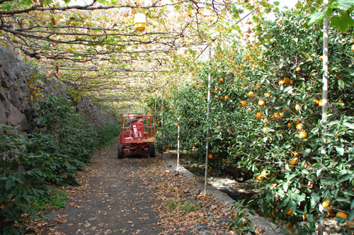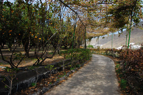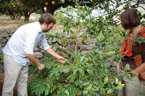 La Finca Los Berrazales está a la entrada del Valle de Agaete. Discurrimos por un agradable paseo entre naranjos, cafetales y viñedos hasta el corazón de la propiedad donde una bonita capilla bendice estos dominios. Es un conjunto de 12 hectáreas de las cuales 7ha son de naranjeros, 3ha de viñas y 2ha de varios cultivos entre ellos el café, un producto estrella del que Los Berrazales se sienten muy orgullosos.