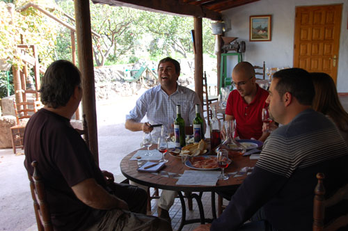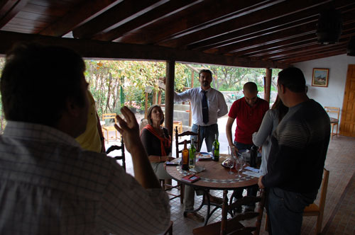 En el amplio zaguán discurre luego nuestra charla sobre los vinos que probamos de la bodega.