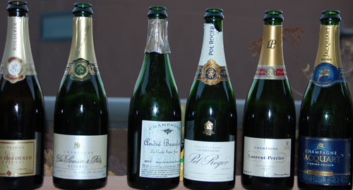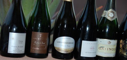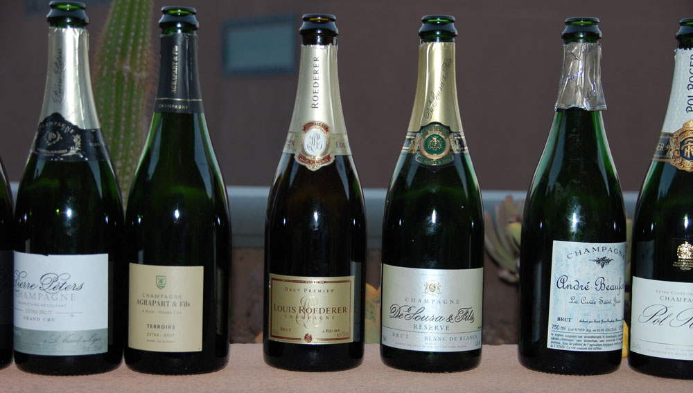 No hay nada para empezar como un Gatinois Grand Cru o a continuación de un Pierre Péters Grand Cru, aquel porque su nariz de cítricos y frutos secos estimule unas pocas notas de menta de este Péters o los brillantes matices de Roederer, equilibrado, de buena acidez bien integrada, bonito y complejo te abren la perspectiva Jacques Selosse con su pomelo, su armonía, el pastel fino, la rodaja bajo una suave mantequilla y crujiendo casi como el Francis Boulard Petraea un champán de excelente finura y personalidad, frutas blancas (manzana) y algo de cassis, tostados y humo hasta que llega el De Sousa & Fils Reserve una nariz que se abre rápidamente con aireación, queque humedo de frutas y en boca muestra una buena textura fina y apetitosa; la fruta de manzana verde viene con Pierre Gimonnet, un champán hermoso con frutos rojos, clásico, buena madurez y alta pureza y el Laurent-Perrier aporta otra dosis, una nota más internacional con un corte de heno y final de bollo de leche que tambien trae el Andre Clouet pero mostrando un toque de mineralidad que le da impulso con esos aromas florales, las especias orientales dulces y el acabado de fruta roja con matices, complejo como el Billecart-Salmon muy expresivo, con notas de cítricos y cacao rallado, y en boca es muy agradable, expresivo, tiene pureza y potencia.