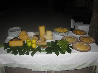 A su vez se dispuso una mesa de corte de quesos, donde nuestro compañero Jaime Ivorra, otro miembro con solera en el mundo de la alimentación alicantina (regenta un puesto en el Mercado Central de Alicante que ha pertenecido a la familia desde 1928), nos deleitó a los postres con un curiosísimo queso de oveja merina extremeña que en su juventud fue torta del casar. También se disfrutó de un delicioso Gouda de vaca lituano, un genuino Gruyere suizo y dos Pecorinos italianos, uno de ellos veteado con lascas de tartufo que resultó delicioso.