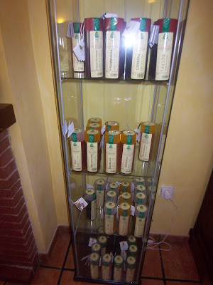 En el apartado de ensaladas destacar un colorido conjunto de brotes germinados de lombarda, cebolla y brócoli, distintas hierbas de la huerta, zanahorias, taquitos de fresa, granos de granada, pipas de girasol y trocitos de turrón de Jijona, que causó expectación, tanto por su combinación de colores y su presentación, como por el aliño que la acompañaba: vinagre de fresa. A lo largo de la comida descubrí que una de las aficiones de Josele es la creación de originales y alocados aliños para platos y ensaladas, que se pueden adquirir tanto in situ como en ciertas tiendas gourmet de la provincia. Son todo un alarde de imaginación donde podemos encontrar creaciones tales como aliño de gin tonic, higo chumbo, licor café, vodka con naranja, eneldo, cereza y así hasta más de 17 que pude contar en la vitrina donde los expone. Durante la comida probamos el de fresa, higo chumbo, licor café y eneldo, más los que llevasen incorporados los platos. Una apuesta ganada por diferenciarse y ofrecer un producto propio y original.