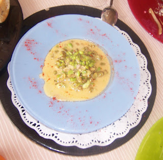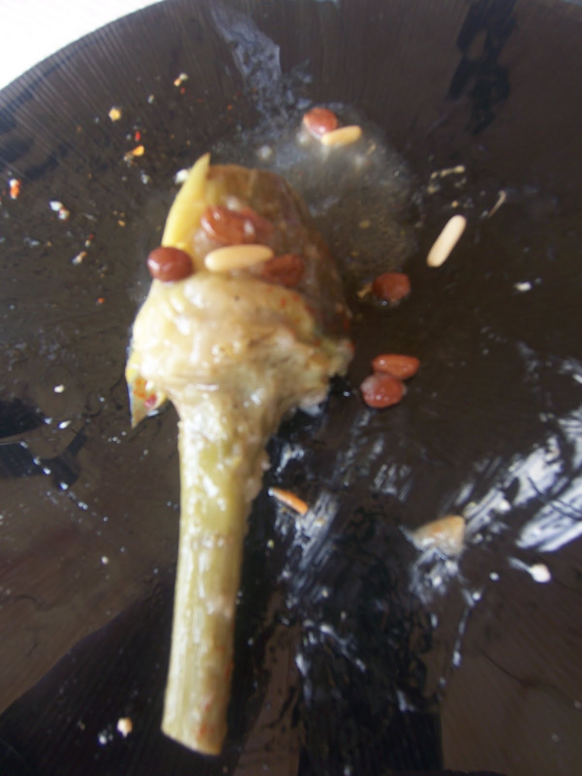 Destacar las alcachofas estofadas, acompañadas de pasas y piñones, que directamente se derritieron en la boca, como si en vez de vegetales se tratase de figuras hechas de mantequilla. Exquisitas y acertadamente aderezadas con la salsa ofrecida. Algunos comensales destacaron positivamente el hecho de servirlas conservando una buena porción del pedúnculo, síntoma según los entendidos de una gran frescura y un tamaño perfecto para su consumo (ni que decir tiene de donde habían salido).