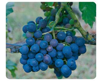 Racimo: la longitud media del racimo es de 9,9 cm, compacidad media; uvas con forma esférica, de color azul-negro, pulpa no colorada y sin ningún sabor particular. La mayoría de la bayas llevan una sola semilla y su peso medio es de 0,0322 gr.