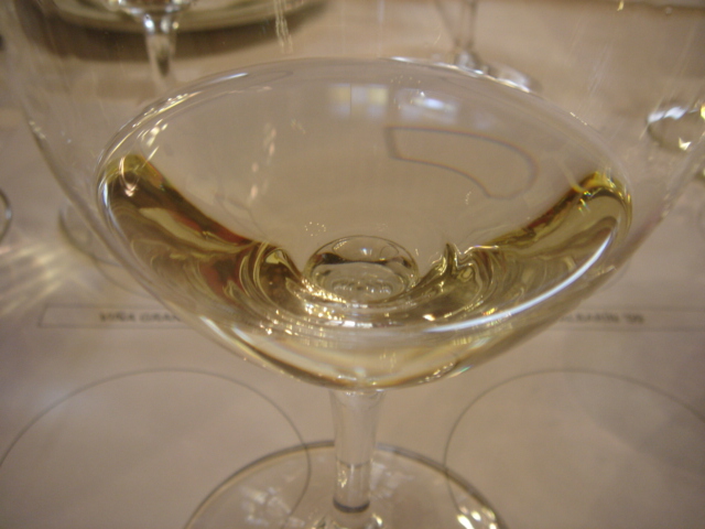 De color amarillo pálido, limpio y con lágrima viva y brillante. Aromas de fruta blanca, apuntes de moscatel, notas minerales, salinas, a ostras. En boca muestra una buena acidez -para algunos paladares, algo excesiva-, fresco y con un recorrido medio un final con un ligero amargor. Untuoso.
