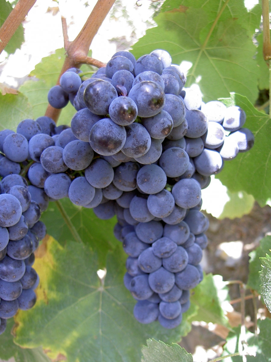 Racimo: La longitud del racimo es de 9,4 cm compactos, uvas con forma ligeramente elipsoidal, de color rojo violeta oscuro, pulpa no coloreada y sin ningún sabor particular. La mayoría de las uvas llevan una o dos semillas y el peso de éstas es de 0.0336 gr.