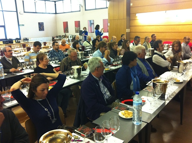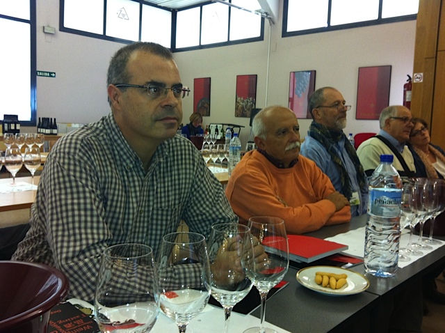Nos recibió en EVENA la Presidenta del Consejo Regulador de la Denominación de Origen Navarra, Pilar García, una erudita y conocedora profunda del mundo del vino de su tierra. Nos obsequió con una disertación interesantísima sobre el mundo del vino en Navarra, sus bodegas, sus tierras, sus viñedos, etc. A continuación Pilar dirigió una cata comentada de una serie de vinos escogidos entre los más interesantes del panorama vinícola navarro: Inurrieta Miedioda Rosado 2010, un clásico rosado navarro; Gran Feudo Edición Chardonnay Blanco 2008, con barrica, con notas de miel y vainilla y fruta blanca; Pagos de Araiz Tinto Roble 2009, aromático con un recuerdo de violetas en nariz; 8A Mil Gracias Tinto crianza 2007, fruta negra y mineral; Domaines Lupier El Terroir Tinto con madera 2008, un 100% Garnacha, vino redondo de buena capa; Alzania Selección Priva