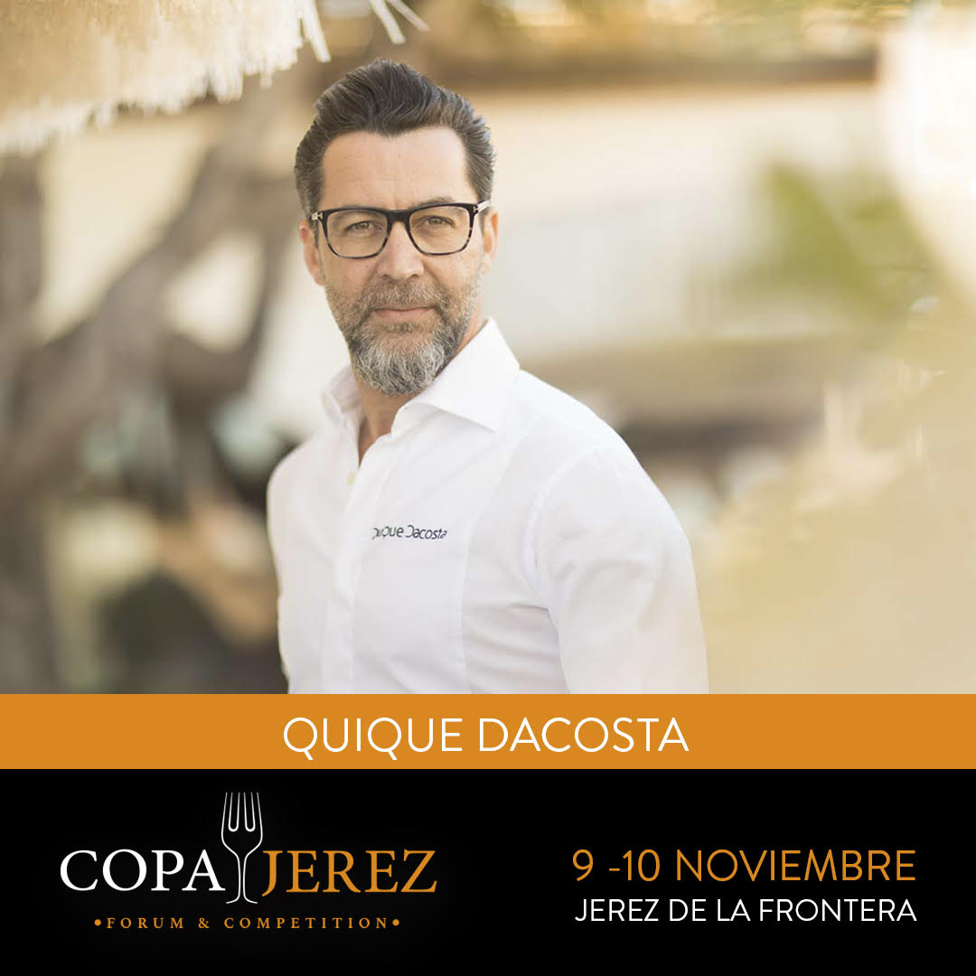 Copa Jerez Forum & Competition continúa sumando estrellas al cartel de esta edición. La última incorporación ha sido la de Quique Dacosta (Quique Dacosta Restaurant***) que, junto a Josep Roca (El Celler de Can Roca***) y José Antonio Navarrete (Quique Dacosta Restaurant***), protagonizará uno de los actos más esperados del foro gastronómico: la ponencia con cata y degustación "Una mirada a Jerez desde el Mediterráneo".