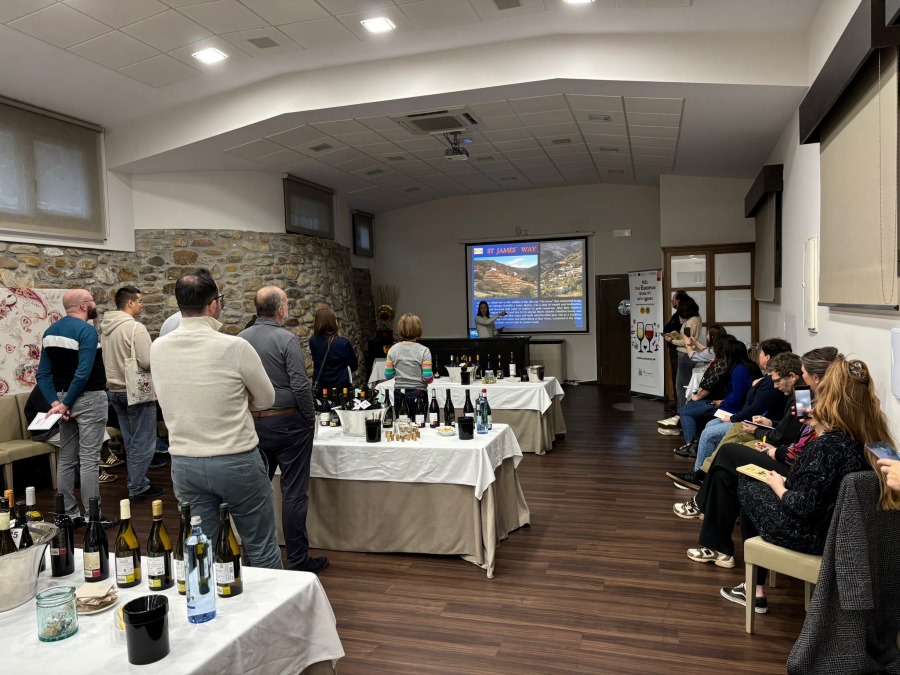 Tras conocer las características específicas del territorio que visitaron por primera vez, los asistentes tuvieron ocasión de degustar vinos blancos y tintos, percibiendo así las particularidades de cada uno y descubriendo las razones que abalan la calidad única de los productos de la Denominación de Origen Valdeorras.