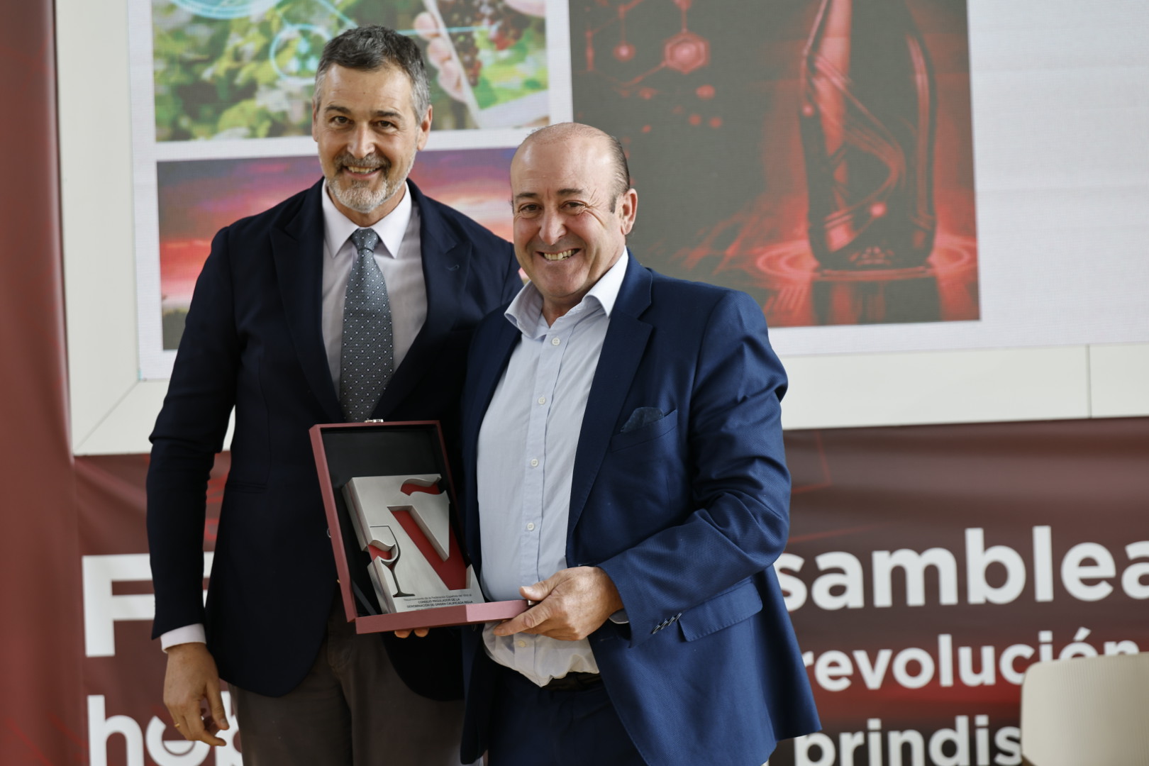 Fernando Ezquerro, presidente del Consejo Regulador de la DOCa Rioja, recogió el premio de la mano de Emilio Restoy, Vicepresidente Segundo de la FEV, al término de la asamblea general del organismo, que ha tenido lugar hoy en el Colegio Oficial de Arquitectos de Madrid (COAM).