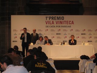 Recientemente premiado por los foreros de Verema como Personaje del mundo del vino del año 2007 el negociant Quim Vila viene organizando desde hace ya tiempo su Música del Vi en el primer día de Alimentaria. Para el día previo a esta, su quinta convocatoria de la Música del Vi, Quim pergeñó una mueva actividad musical, todo un “pas de deux” vinícola, el Primer Concurso de Cata por parejas Vila Viniteca.En esta novedosa actividad participaron 84 parejas procedentes de 20 provincias españolas e incluso personas de otros países como Italia, Dinamarca, Holanda o Rusia. Tanto en la primera fase –eliminatoria- como en la final se cataron siete vinos, 2 blancos, 3 tintos y 2 vinos especiales.
