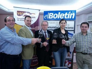 Los participantes en la cata fueron Nacho Coterón, sumiller y presidente de la asociación de Sumilleres de Alicante, José Antonio Haya, profesor de la Escuela de Enología de Requena, Pepe Guillén de la Consellería de Agricultura, María Teresa, flamante Nariz de Plata 2006 y un servidor en representación de Verema.