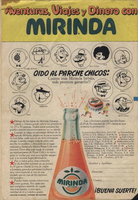 Ahora cuando veo a Don Simón dándose de puñalas con Granini por el porcentaje de concentración de zumo, y los argumentos de funcionalidad y salud que esgrimen para vender más.... recuerdo el por qué pedía Mirinda... era por el premio que había debajo de la chapa.