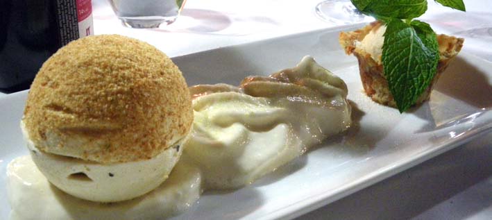 14 profesionales de la restauración valenciana ofrecieron la mejor cara de lo que se puede hacer con horchata, "fartons" y mucha imaginación. Ganó el Restaurante Chust Godoy de Valencia, con esta esfera crujiente y merengue de horchata, su tulipa de "fartons", y sorbete de crema de chufa. Unanimidad absoluta en el jurado a la hora de elegir el triunfador, y pollo descomunal entre los participantes por la jugada cicatera de Jesús Lapena (Cocinero que representaba al Rte. Chust Godoy).