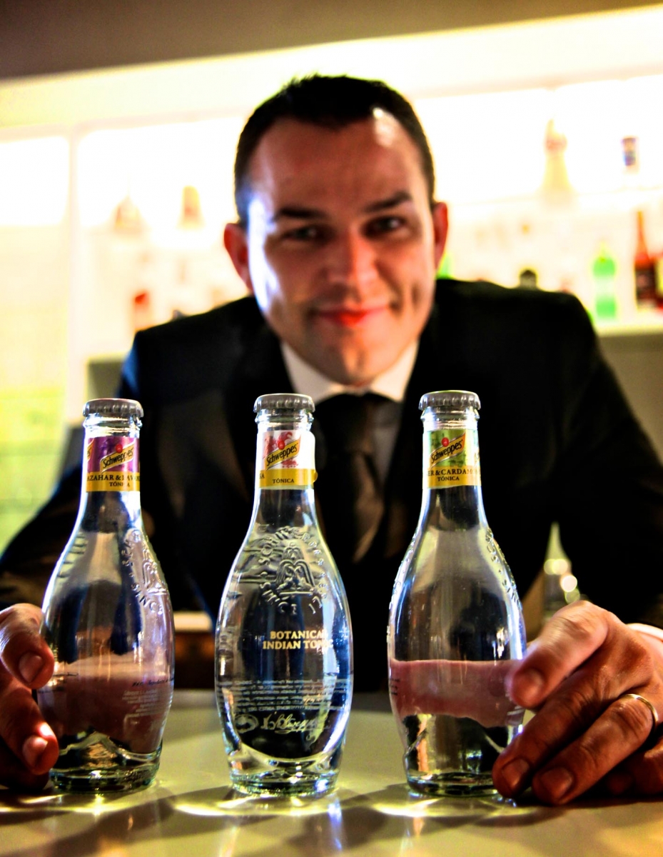 Iván Talens, buen amigo y uno de los ases de la coctelería en España me presentó ayer, durante una sesión de fotos que le estaba haciendo para un sarao que vamos a montar en Las Añadas de España, las nuevas aguas tónicas de Schweppes: Pimienta Rosa - Ginger & Cardamomo - Azahar & Lavanda, y la selección Heritage, bajo la denominación Botánical indian Tonic.