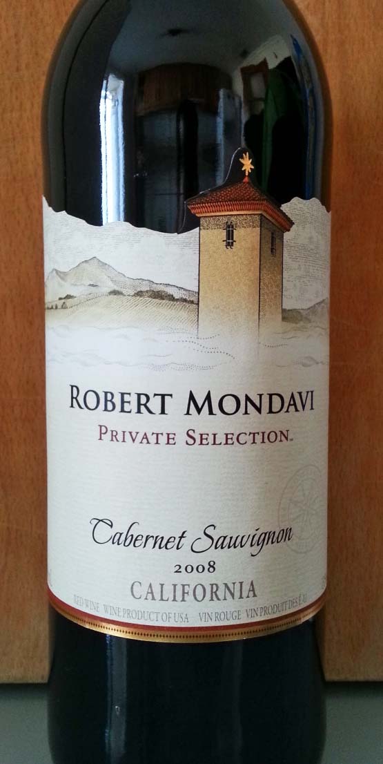 Como ya dije, se me presentó la oportunidad de hacerme con unas botellas de un vino de la gama Private Selection de Mondavi, en concreto el Robert Mondavi Private Selection Cabernet Sauvignon 2008. Aclaremos antes de nada que en los Estados Unidos al menos el 95% de las uvas deben ser de la vendimia mencionada en la etiqueta, y que para que un vino pueda llevar el nombre de la variedad, debe elaborarse al menos con un 75% de esa casta.
