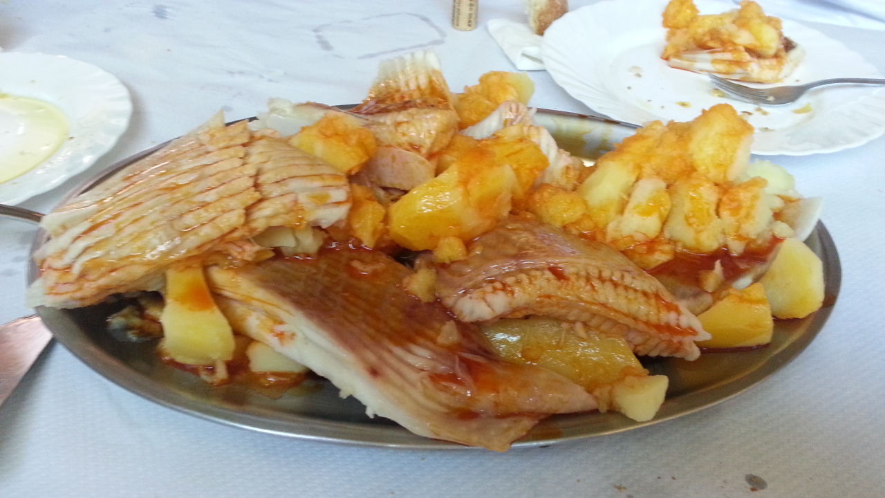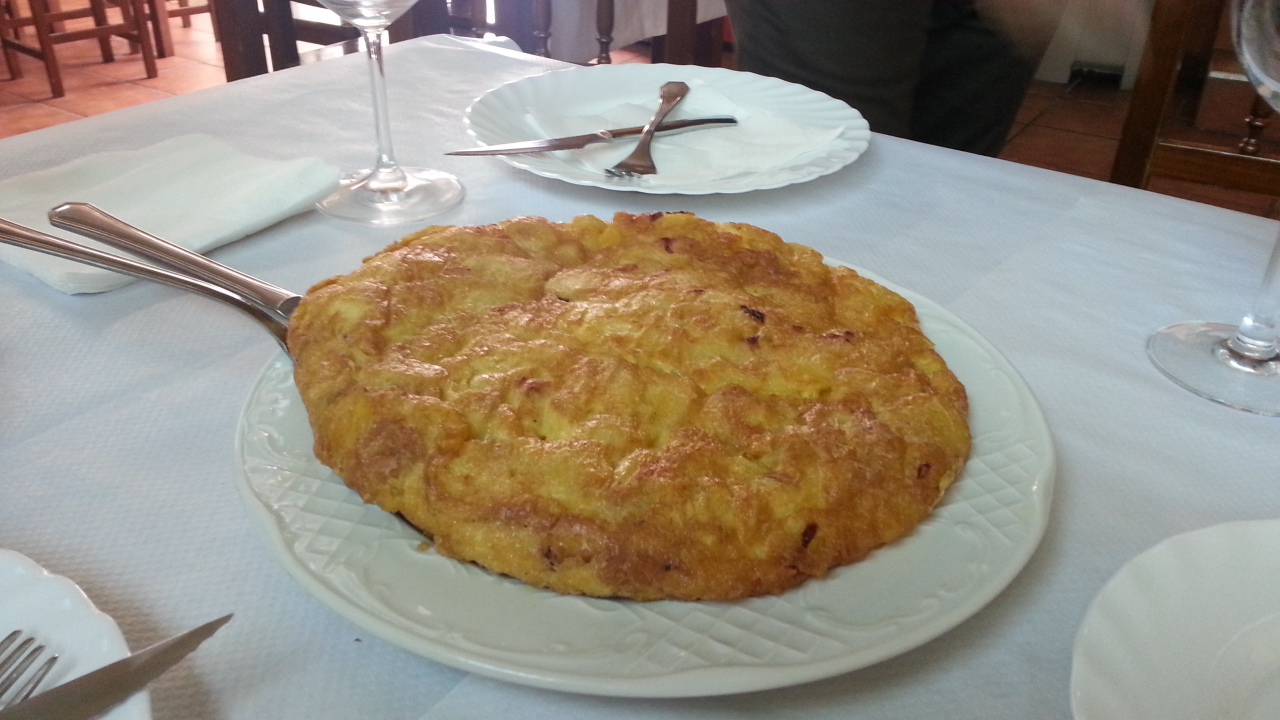 Pasamos por fin a lo que era el punto clave de esta visita, que además la señora María Isabel ya empezaba a reñirnos porque la comida llevaba ya mucho tiempo hecha. En la mesa nos esperaban una empanada de xoubas con un sabor como hacía tiempo que no probaba (hecha por una vecina, aclaró el anfitrión), queso, aceite de oliva navarro, y las joyas, la tortilla y la raya a la gallega. La tortilla era un prodigio de cremosidad, sabor desbordante, punto perfecto, imposible parar de comerla. Y la raya a la gallega, con los aromas del pimentón llenándolo todo, con una carne de textura inmejorable y un sabor que ocupada todos los rincones de la boca. Acabamos con una trenza de Caldas y en honor a nosotros, los visitantes levantinos, una mistela de Teulada.
