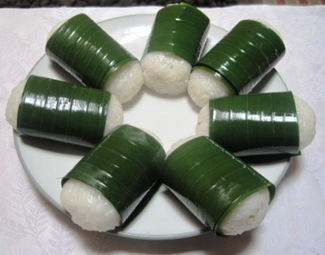 Se calienta un cucharón con aceite y se vierten en él los huevos bien batidos con el relleno de carne de cerdo hasta que se genera la cobertura. Se termina hirviendo al vapor y servido con salsa de soja.