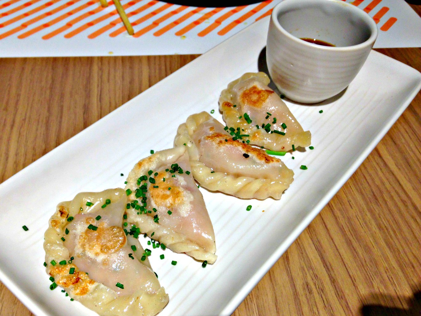 Estas Gyozas rellenas de Magro de cerdo llevaban una doble cocción, primero al vapor y luego fritas. El relleno es el típicho chino de magro de cerdo y col, muy sabroso, pero ya me adelantó Steve que estaban investigando con otros rellenos (todo para pincharme a que vuelva ;)) y la textura, un punto más subida de cuerpo que lo habitual pero sin perder su proverbial suavidad.