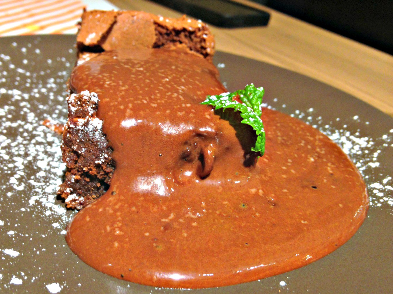 El segundo postre, el Pavé de Chocolate sin harina, es un guiño que raramente se hace al colectivo con alergia al gluten y el resultado es magnífico, con una cremosidad y esponjosidad sorprendentes.