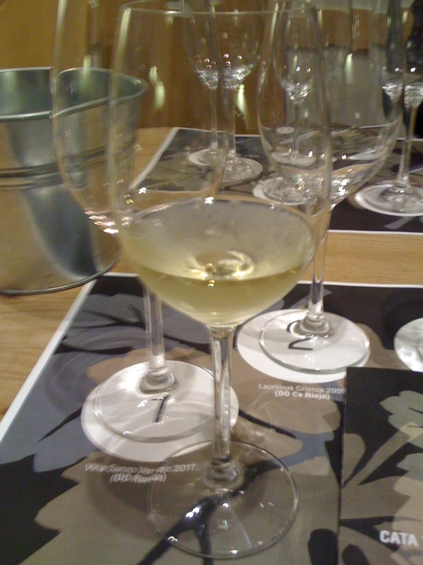 - Yo solicité que me sirvieran una copa del Viña Sanzo Verdejo 2011 porque Javier había comenado durante su presentación que acompañaba estupendamente al pescado azul y no puedo por menos que estar de acuerdo con él.