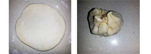Cuando ya está hecho, cogemos nuestra masa ya fermentada y la dividimos en bolitas de 30 grs. más o menos. El procedimiento va a ser siempre el mismo: cogemos una, la extendemos con el rodillo intentando que quede lo más fino posible, colocamos el relleno y lo cerramos. ¿Y cómo hacemos esto? Pues simplemente juntando ambas partes de manera que la masa quede "pegada". Otra técnica es la del pliegue, en el vídeo que os pongo al final lo explican muy bien.
