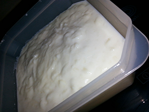 - Dejamos enfriar y lo metemos en la nevera unas 2 horas para que cuaje bien. Cuando veamos que ha cogido una textura como esponjosa y un poco elástica significa que ya está lista para el siguiente paso.