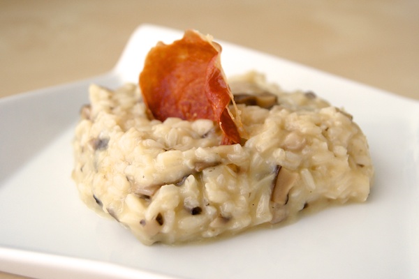 Risotto de setas con jamón ibérico.