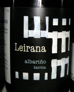 Decidimos probar un albariño con barrica. Algo que no me suele seducir mucho y que esta botella no haría mas que confirmar. Se trataba del Leirana Barrica 2006, un vino que fermenta y permanece en barricas nuevas de roble francés de 750 litros durante 12 meses. De color amarillo intenso con algún leve destello verdoso. Tiene una nariz no muy intensa, bastante fresca, donde la madera se nota pero no domina, entre notas de fruta blanca madura, flores, algo de miel y alguna nota vegetal y ahumada. Sin embargo en boca si que se nota la barrica, dominando sensaciones mantequillosas y ahumadas no tiene mala acidez y el final es correcto. Bueno, por unos 10€ no esta mal y no me ha parecido el peor vino de estos que se hacen hoy en día con madera, pero no es mi estilo, podría ser albariño o verdejo o sauvignon blanc.