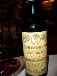 Sin duda el vino de la noche, pertenece a esa fabulosa colección de rarezas de Osborne, junto con el Amontillado Solera AOS, el Oloroso Seco BC 200, el PX viejo y el Palo Cortado Solera P triángulo P. Y está a la altura de sus excelsos compañeros con una complejidad en nariz y una estructura y persistencia en boca apabullantes. Un vino de bandera, que combinamos con buenos habanos y nuestra conversación.