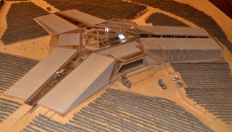 Mirador con vistas a uno de los botelleros de Bodegas Campillo. Sobran las palabras.