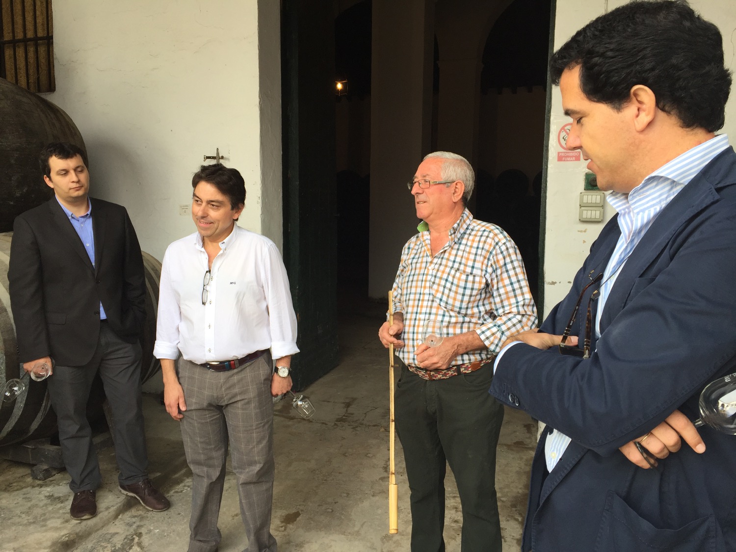 Tras conocer la viña visitamos a uno de los principales almacenistas de Lustau, Manuel Cuevas Jurado. Estos almacenistas son todos aquellos empresarios que elaboran sus propios vinos de forma artesanal en bodegas familiares de pequeña producción. Lustau selecciona a los mejores y los embotella con su marca, pero siempre registrando en las botellas la procedencia de esos vinos. Obviamente hay una coordinación del equipo técnico de la bodega, pero siempre se busca que esas bodegas familiares dejen su sello en el vino.