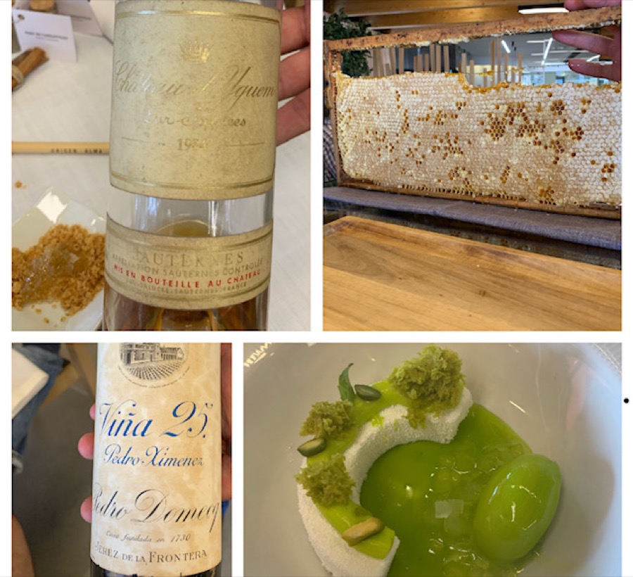 - El primer pincho fue "Obama en la Casablanca" (Pincho de oro del Concurso de Pinchos de Valladolid 2009), hecho con base de hojaldre, crema de champiñones, huevo de corral trufado a baja temperatura y patata teñida de tinta de calamar deshidratada. Todo ello servido en un cuenco de porcelana simulando a Casa Blanca. Este exquisito bocado lo maridamos con Dehesa de los Canónigos 2016, envejecido 15 meses en barrica.