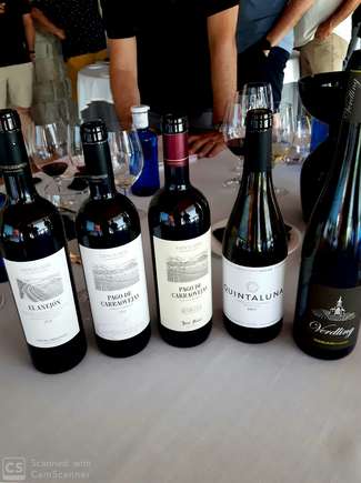 Tras la visita a la bodega, mientras esperábamos al resto del grupo catamos un sorprendente verdejo elaborado al estilo de los riesling alemanes,Verdling 2016 de Ossian. Cuando ya estábamos todo el grupo unificado de nuevo pudimos disfrutar de una magnífica cata comentada por el gran Guillermo Cruz donde catamos estos cuatro vinazos: Quintaluna 2017, Pago de Carraovejas Autor 2016, Pago de Carraovejas 2016 y El Anejón 2014.
