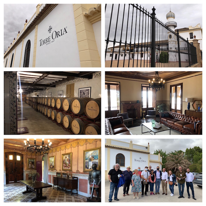 La siguiente visita fue a la bodega Torre Oria, bodega que data de 1897 y pionera en elaborar espumosos por el método tradicional en el municipio de Requena y que consiguió que todo el municipio fuera adscrito a la DO Cava en el año 1982. Se encuentra ubicada en la preciosa Finca de Oria de Rueda, un edificio de estilo modernista del siglo XIX, totalmente reformado y rehabilitado para ofrecer diferentes tipo de servicios a la bodega y sus clientes.