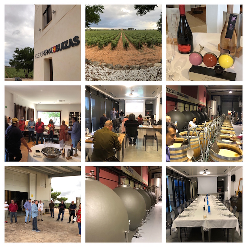 Iniciamos la visita con una interesantísima cata de uvas de las variedades que se utilizan para hacer cava en la bodega, con especial relevancia de las variedades chardonnay y pinot noir, claves en la elaboración de sus afamados cavas. Posteriormente hicimos una visita por la bodega donde tanto Pablo Ossorio, en lo referente al trabajo de enología, como Rafa Navarro en la parte de viticultura, nos fueron explicando todos los procesos que se han ido desarrollando tanto en la elección de variedades plantadas que, en muchos casos, tras prueba y error de varias añadas, han ido reingertando hacia aquellas que mejor se comportan en el terreno, como en el trabajo en bodega, con la elección de la forma de realizar las fermentaciones, con barricas abiertas, o el sistema de renting que utilizan para el uso de barricas nuevas durante todos los años. Llamaron especialmente la atención los depósitos de hormigón prácticamente esféricos, para hacer remontados y bazuqueos de forma natural, sin ser agresivos con el mosto. Mucha ciencia, a través de la tecnología, destila esta bodega de reconocido prestigio.