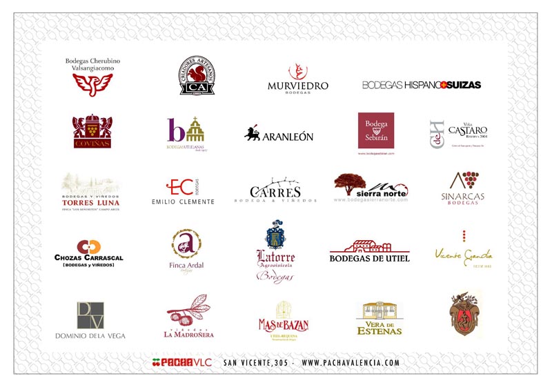 Aranleón, Bodegas Utielanas, Bodegas y Viñedos de Utiel, Carres Bodega y Viñedos, Coviñas ,Criadores Artesanos, Cherubino Valsangiacomo, Chozas Carrascal, Dominio de la Vega, Emilio Clemente, Finca Ardal, Hispano Suizas, Latorre Agrovinícola, Más de Bazán , La Madroñera, Murviedro, La Protectora Cooperativa, Sebirán, Sierra Norte , Torres Luna, Vera de Estenas, Vicente Gandia, Vinícola del Oeste, Vinícola Requenense.