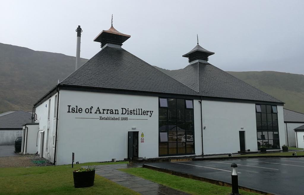La destilería Arran se encuentra en las afueras del pueblo. Sus edificios rectangulares de un blanco inmaculado con tejados triangulares se ven fácilmente al lado de la carretera.