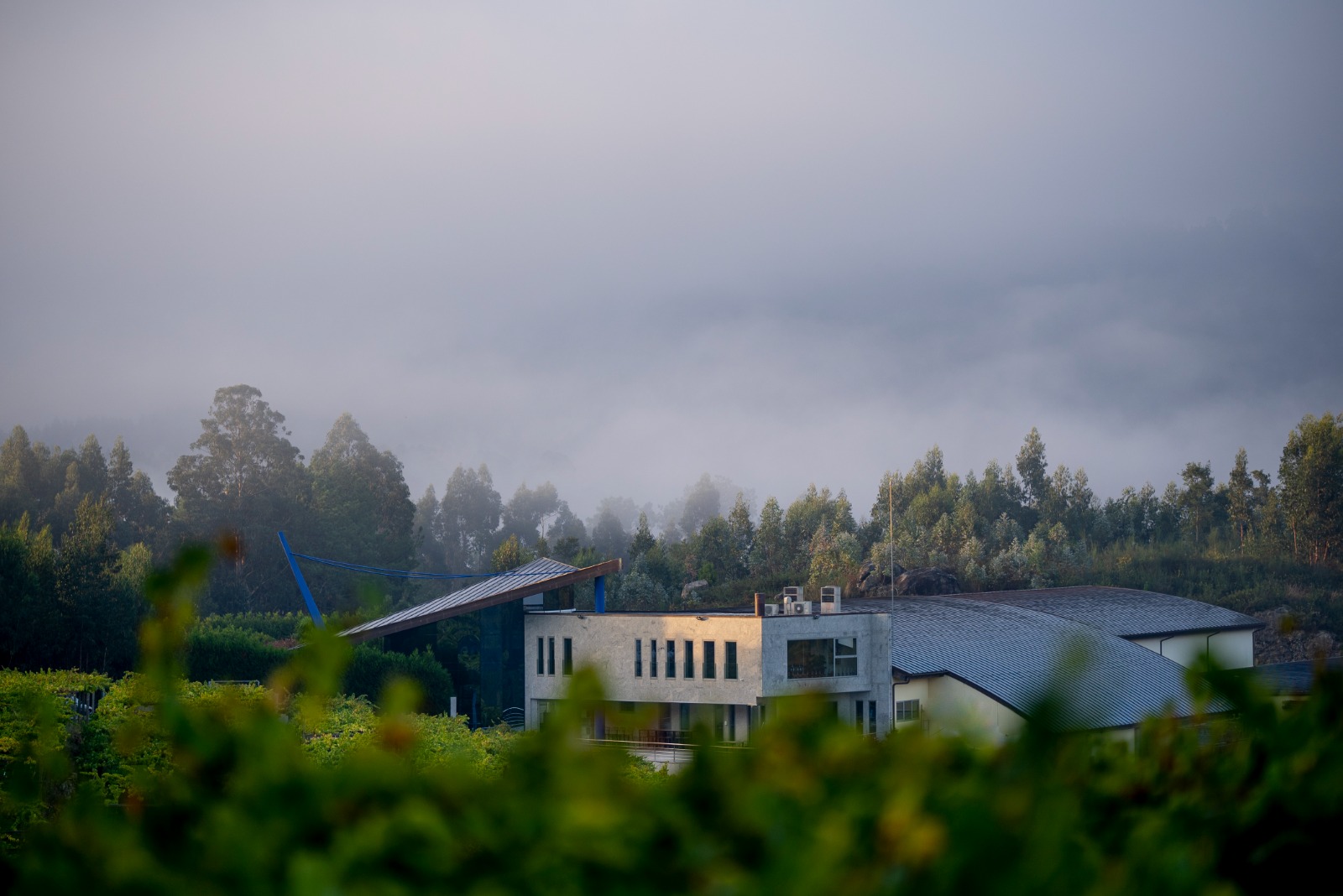 La bodega se alza sobre una colina que actúa como un auténtico mirador sobre el paisaje atlántico, rodeada de viñedo y abierta a la influencia constante del océano. Su arquitectura, construida en granito —material emblemático de Galicia—, refleja la conexión entre tradición, territorio e innovación que define el espíritu de Mar de Frades.