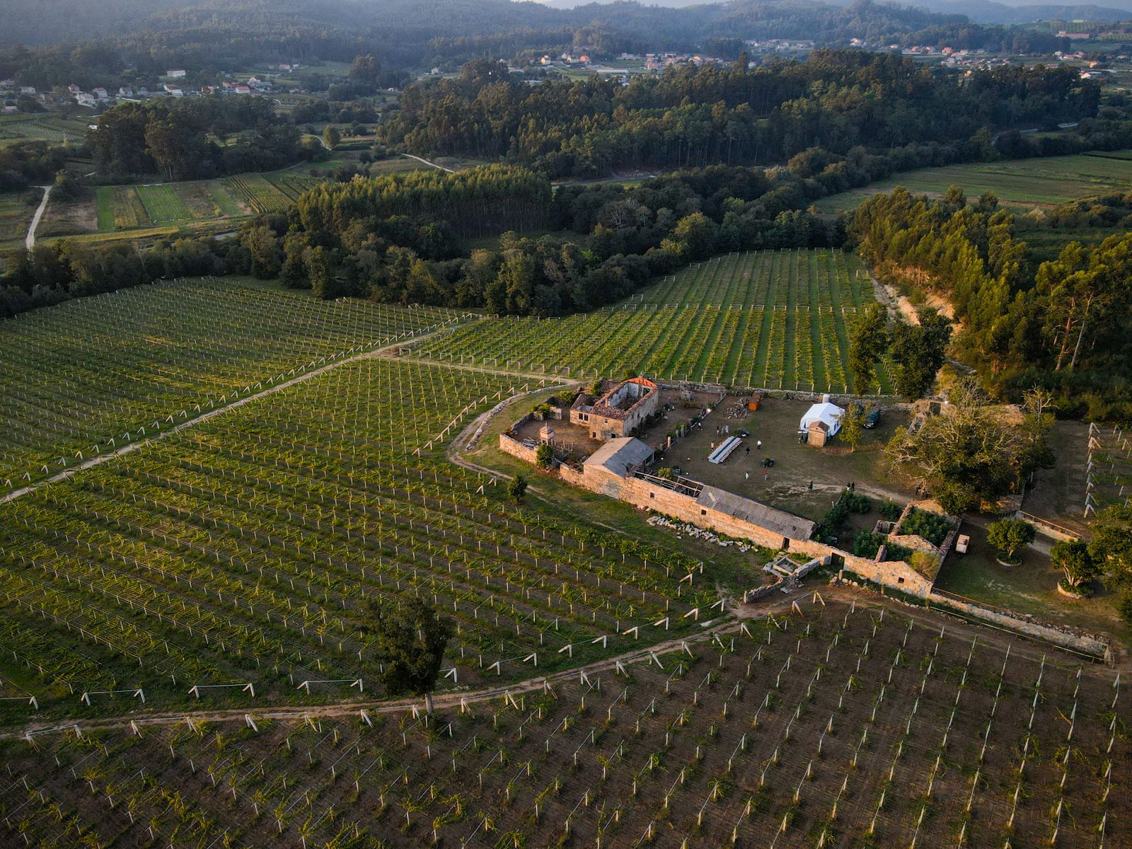Una gran finca situada junto al río Umia, donde Mar de Frades recupera un antiguo paisaje vitícola vinculado históricamente a los pazos gallegos.