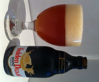 Y hoy estamos ante otra rica cerveza belga de cuádruple fermentación. El pasado agosto probamos la versión classic, una triple, y la verdad es que nos encantó. A ver ésta... Leemos que "entre sus ingredientes se encuentran cuatro variedades de malta, que le aportan su característico aroma y un color ámbar, y la famosa levadura de vino de Van Steenberge, con la que se obtiene un sabor único, suave y algo dulce. La elabora Brouwerij Van Steenberge, ubicada en Ertvelde y fundada en el 1874 por Jean Baptiste De Bruin. El diseño de su botella en blanco y negro rinde homenaje a la ciudad de Gante, ya que son los colores de la ciudad y el número 9000 hace referencia a su código postal. El dragón dorado de su etiqueta representa la estatua que se encuentra en la torre del campanario de Gante y que simboliza el poder y la libertad de la ciudad.". Pero vamos a lo nuestro. La sacamos de la nevera y la abrimos y servimos a unos 12°C.