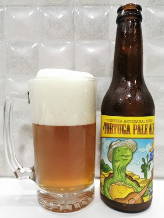 Tras unas cuantas de éstas tomadas volvemos a colgar otra valoración cuatro meses después. En esta ocasión en la etiqueta aparece el nombre de "Tortuga Pale Ale" y no "Turtle" como en las anteriores. Probablemente dedicarán una parte de su producción al mercado USA y otra al local. Abrimos el botellín de 300 cc y servimos a 10°C: